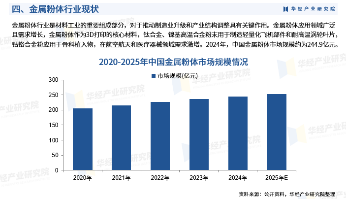 中国金属粉体行业市场深度分析及发展趋势:2024年中国金属粉体市场规模约为244.9亿元